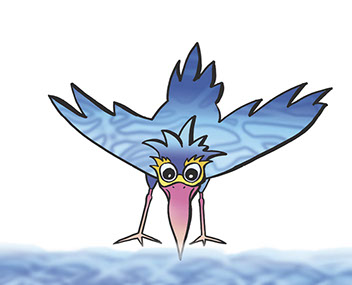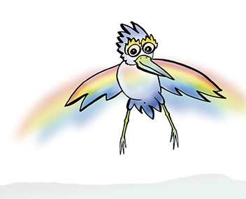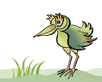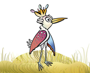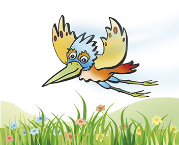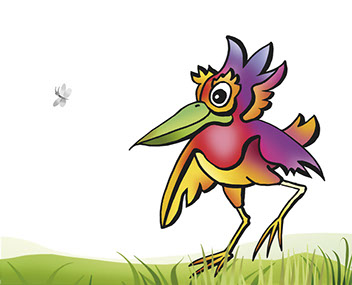 Einfache kindliche Illustrationen für ein Kalenderbuch zeigen 12 Vogelcharaktere passend zu den Monaten.